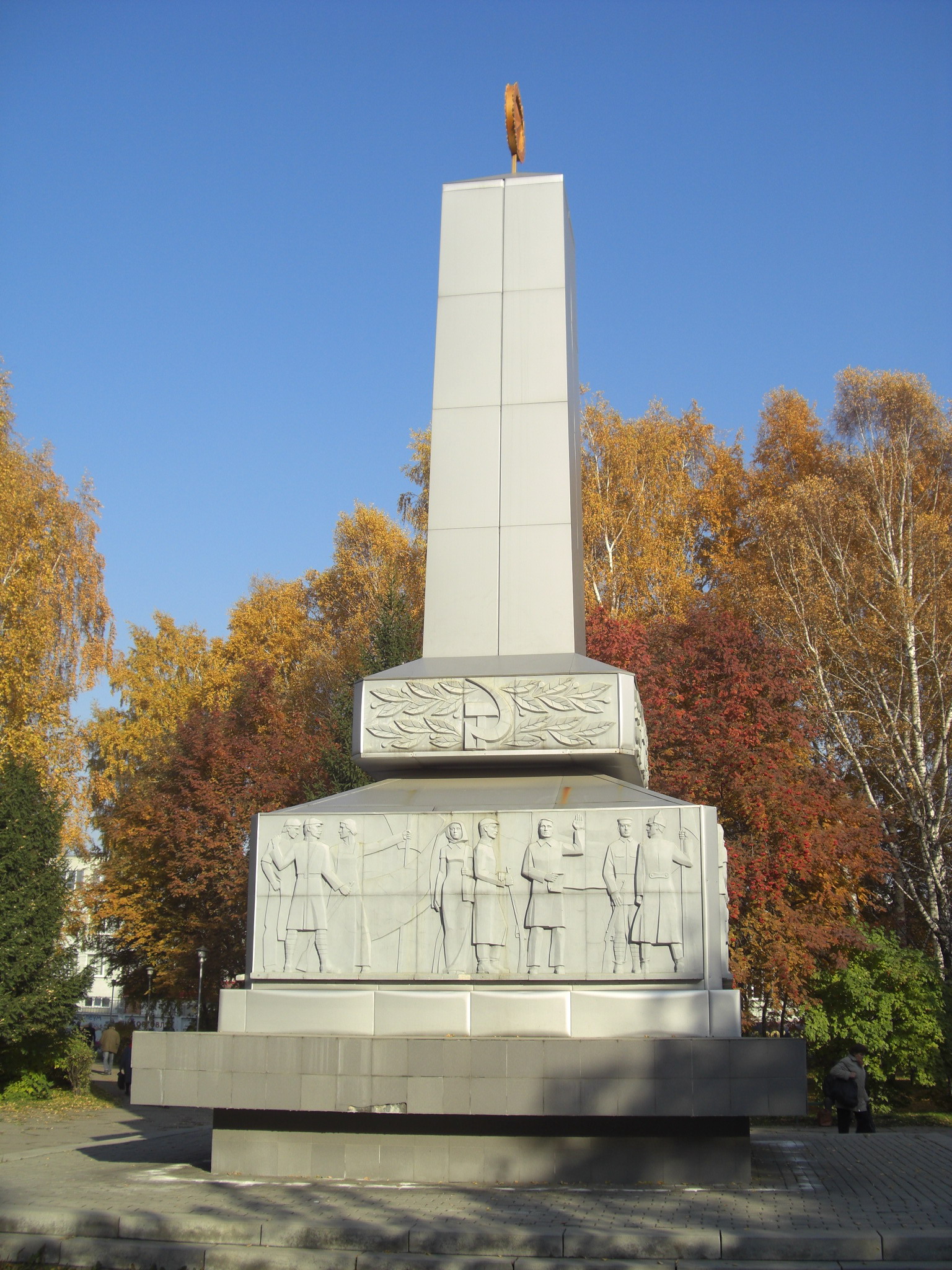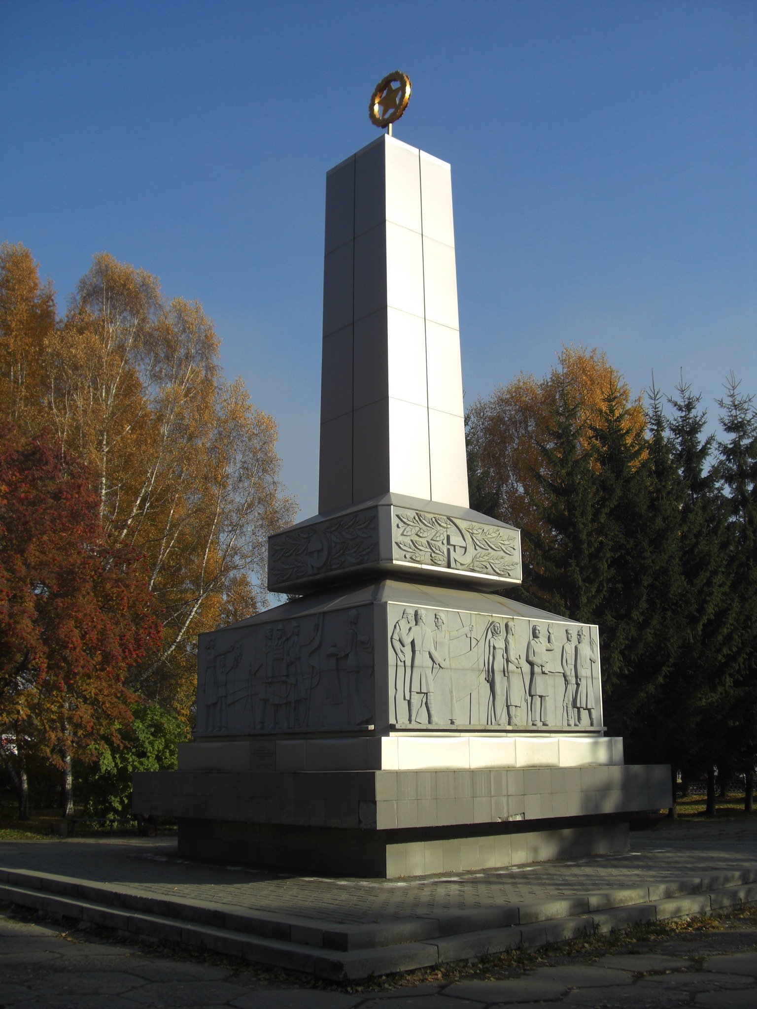 В 1977 году памятник реконструировали скульпторы В. Петухов и Н. Михайловский. Они создали четырёхгранный обелиск на двухступенчатом постаменте. В верхней части постамента помещена рельефная композиция, раскрывающая тему гражданской войны и борьбы за Советскую власть.